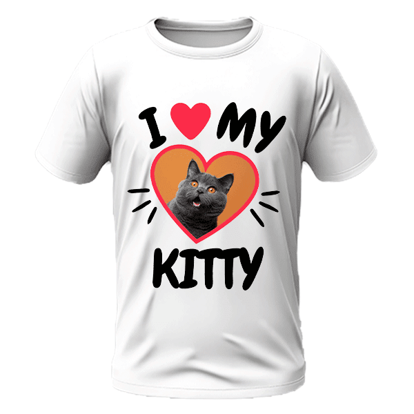 Koszulka I Love My Kitty. Koszulka ze zdjęciem i imieniem Twojego zwierzaka. Prezent dla miłośników zwierząt. Koszulka ze zdjęciem Psa i Kota