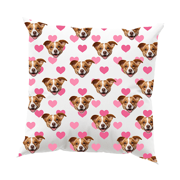 Poduszka z Pupilem Różowe Serca. Dodaj imię swojego Pupila, aby stworzyć unikalną poduszkę ze zdjęcia idealną na co dzień lub jako prezent dla każdego dumnego właściciela czworonoga. Wygodna, trwała i pełna uroku
